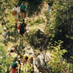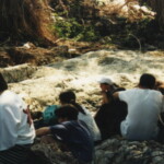 The group of students hiking through the mountains and then they are taking a break. It might have been the first time that some of them to have been out mountain hiking either because they are “city kids” or because hiking is even less of an activity in Bulgaria than in the USA. They are at the Erma Reka settlement pond on the Erma Reka River that flows into the Verbitsa and then downstream past Zlatograd. The lead mines are upstream from here and this “pond” was created to settle any lead out of the water before it continues on.This is one of two students from the University in Sofia that came along to collect the water samples and then test them at the University.
