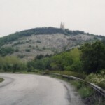 Photos #4 & #5 are of the Roman Bridge at [Nevestino]. Because I wanted to get the pictures and because I saw no signs I ended up on the wrong road out of town. I was about 6 Km toward Dupnitsa when I realized were I was and the mistake that I had made. To go back was almost as far as going forward; so being a forward “looker” I continued on the road to Dupnitsa. This ended up adding 10 Km and 25 Meters with about 10 Km more of the busy road to Blagoevgrad and Greece. Now that I have done it I am glad and probably should have selected this route. Photo #6 is of the monument near the summit between Nebestino and Dupnitsa; #7 (didn’t scan – blurry) was of the cloud covered Rila Mountains near Dupnitsa. I stayed in a hotel because Dean & Dorthy [Business Volunteers] were both out of town; Dean had offered his apartment but because I was a day late he had other obligations. He wanted to make arrangements to get the key to me and still have me stay there but he is on the 5th floor of a very narrow stairway and I thought it not worth the hassle. Saw a stork for the first time since Chevron Bryag to Montana and Montana to Vidin where I saw a lot of them. Cuckoos are calling again from the wooded areas. I have a question for Jim [Ecology Volunteer in Plovdiv and bird expert]; Do cuckoos avoid areas above a certain altitude? I don’t remember hearing them above 800-900 meters; maybe tomorrow. Note: The three star hotel here has a great bathroom with “mixit” valves (the sink one moves around badly but it works); however, shower is into the tub with no shower curtain and the floor gets soaked with no drain – a wet sloppy floor after every shower. AGAIN, they almost got it right but the “it’s good enough” attitude of this country was just to strong!