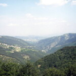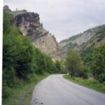 Two pictures of the Rila Mountains from near Bansko where you have good views of the Pirins and the Rilas. The road begins to follow the Mesta River. The Mesta then flows through a canyon before entering the Gotse Delchev valley.