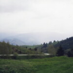 [I had originally scheduled today to be a ride from Bansko to Dospat a total of 101 Km and a predicted 1,010 meters of climbing. Because of how I have been feeling and the accuracy of climbing information I have decided to split the trip into two days.] I had dark clouds again this morning, wind blowing – it is another stormy day. I got rained on last night on the way to dinner as well as the mid section of today’s ride. Almost all down hill but still a struggle with some tail wind. Thought about “bagging it” all the way into Gotse Delchev. Will make a decision in the morning. The private hotel Marabelle near the old Balkan Hotel [not working] was the first hotel to complain about me taking my bike to the room [also the most expensive at 20,000 Leva]. I threatened to leave, asked for my money back, and they said it was OK if I wanted to “sleep with my bike”. The restaurant was good; however, packed with smokers and the waitress was less than attentive or pleasant. OH, when will they ever learn! Photo #10 (two number 10s, did not scan – blurry) of Pirin as leaving Bansko; #11 & #12 of Rilas from same location; #13 at the junction of the road to Gotse Delchev where it meets the Mesta River; #14 near the mouth of the canyon that the river follows into Gotse Delchev. Note: These photo #s seem messed up – I have taken 15 pictures and have forgotten one of them. I have heard no cuckoos since crossing the pass into Bansko. Ask Jim about this. I did see another stork north of Gotse Delchev, after the canyon widens out; the first one since about half way to Kustendil. [Jim said that my observation of no cuckoos at higher elevations is correct; they tend to stay at lower elevation where the habitat is more to their liking. South side of the Rhodope Mountains does not have much to their liking; the same is true of the storks, they prefer lower areas with ponds and slow running water not the fast streams of the mountains].