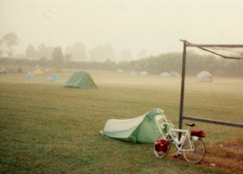 The first picture is of our starting point, the ferry dock at Anacortes, WA. The second one is of John & Janice of Placerville, CA who arrived yesterday afternoon and set up their tent next to mine. They had ridden their tandem from Placerville to Anacortes; over 1,000 miles to start this cross country ride and were considering riding back to Placerville from Maine. Since I was living in Roseville, CA prior to this ride we were practically neighbors and developed a friendship that continued after the ride.