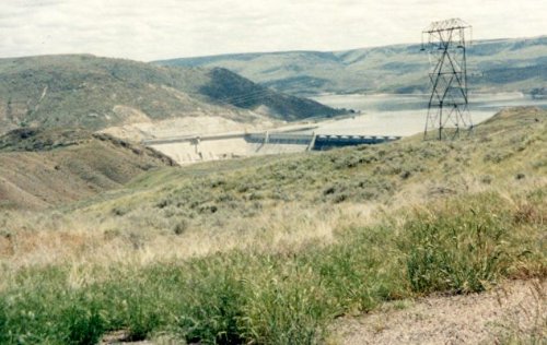 This is Libby Dam just north of Libby, MT. Koocanausa Lake, created behind Libby Dam, extends into Canada. The Kootenia River flowing from the north will do a U-turn and flow back into Canada, the only river in the US that does such a thing.