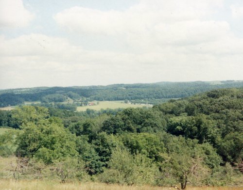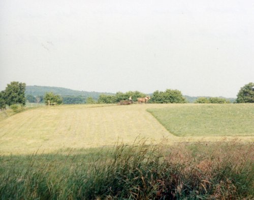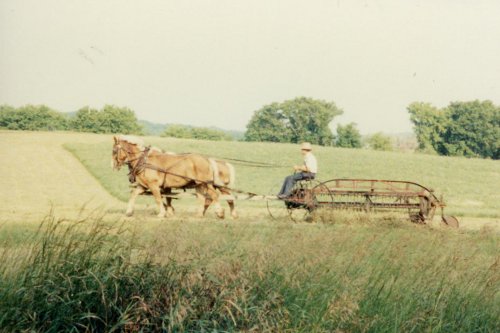 The first real ‘hills’ that we have seen since Big Timber, MT; these are between Portage and Beaver Dam, WI. TThen there are thee pictures of the Amish near Kingston, WI. The first two are of a farmer cutting hay and the third is a buggy, probably going to town to shop.