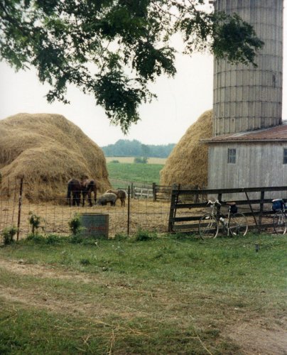 Two pictures of an Amish dairy farm that was selling cookies and pies; taking advantage of the many hungry cyclist riding right past their front door. They had no electricity for the house but they did have electric milking machines and they also had a cell phone for their dairy business; they were a bit more flexible in their beliefs than some Amish.