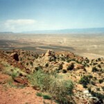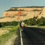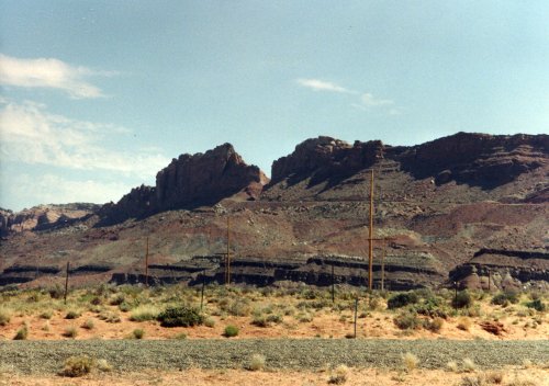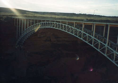 The first picture shows a small mountain range that lies to the east of US89 as we rode toward Page. Then a view from the mesa summit that we climbed before the long downhill into Page. Last is the US89 bridge at Page just downstream from Lake Powell. As an aside, I had a cousin that did some of the steel construction on that bridge.