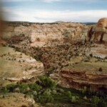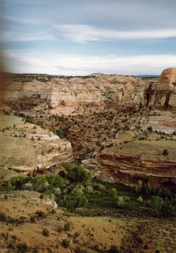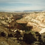 The road to Escalante with Grand Staircase Escalante National Monument to the left side of the road (it is a huge land area that has the spectacular Paria River canyons, but the size was determined more by how much land could be withdrawn from oil drilling than anything else.) The next three pictures are of the Escalante Canyons and Calf Creek area north of Escalante, UT as is the one on the left. Then the last two are looking south/southwest to Escalante and Bryce Canyon where we have ridden from.