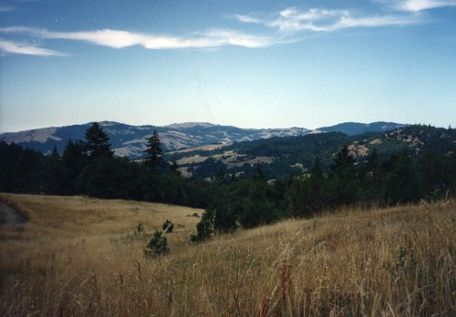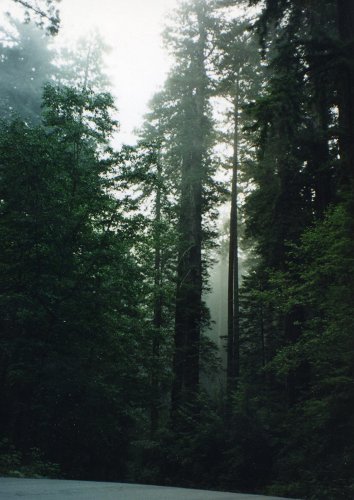 The Northern California Coast looks a lot like the Oregon Coast only dryer. Then two pictures in Redwood State Park; the first is the redwoods in morning fog, the second is a meadow with elk lying or grazing.