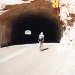 Two pictures along the way to Zion in Utah. The second one shows a rider entering one of the short tunnels on the east side of Zion Park, the long tunnel is not open to cyclist without an escort.