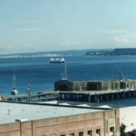 I bought new tires, cleaned bike and tried to adjust the derailleur – I think the rear bearings are going, going, gone. Marilyn and I rode out Pebble Beach Rd to Something Grotto Restaurant and wharf for lunch. It was very scenic and there were a bunch of barking seals along the shore. The new riders ‘swarmed’ the area where my tent was pitched. I asked one of these new ‘weekies’ if he had enough room between my tent and Wally’s, he disregarded my sarcasm and said that he had plenty of room because he had a small tent. I took my tent down and moved to the center of the football field to get away.